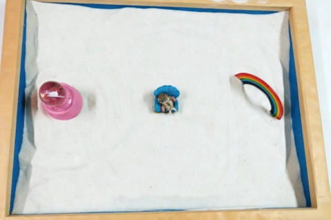 本期心理沙龙资深心理咨询专家王主任带领沙龙成员开启了一场独特的沙盘之旅,她让A做了一个特定主题的个人沙盘,主题是“过去,现在,未来”,规则是分别用一个沙具来代表过去,现在,未来,然后在沙具周围画一个圈。